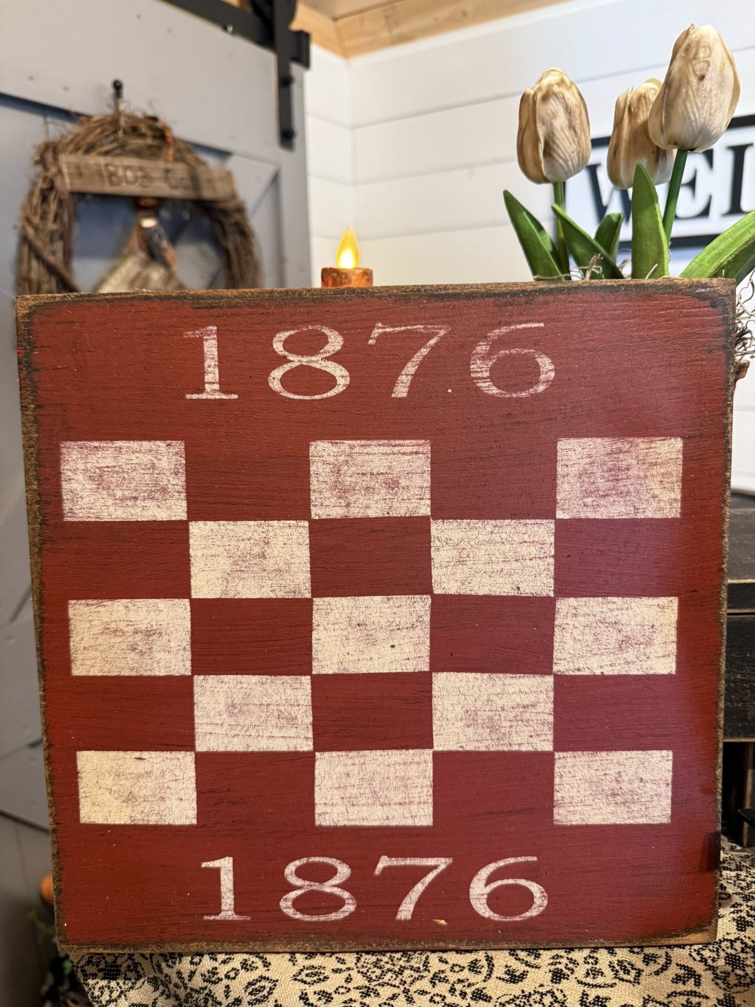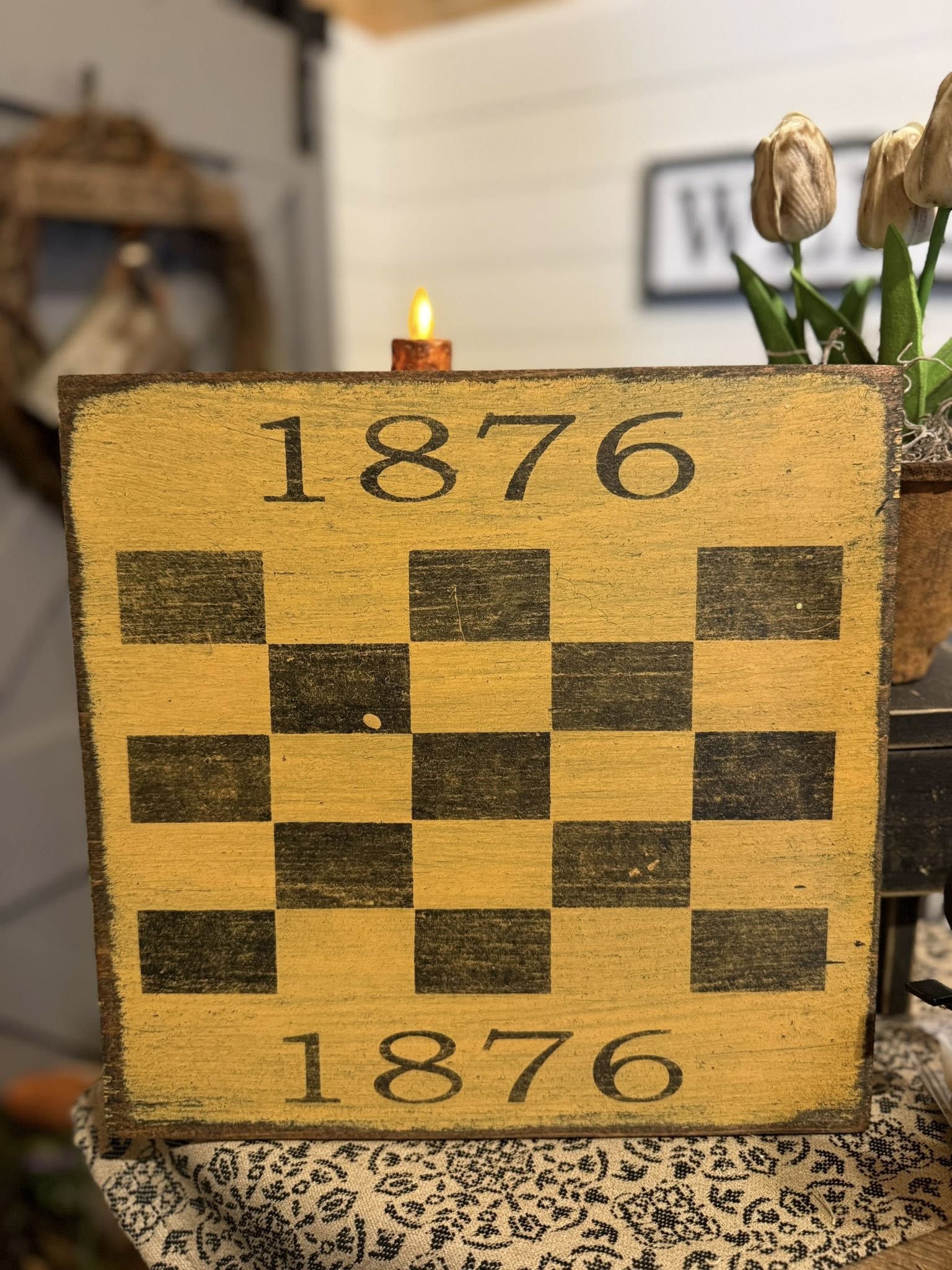 these are beautiful handmade wooden distressed 1876 checkerboards comes in Red, Black & Mustard.