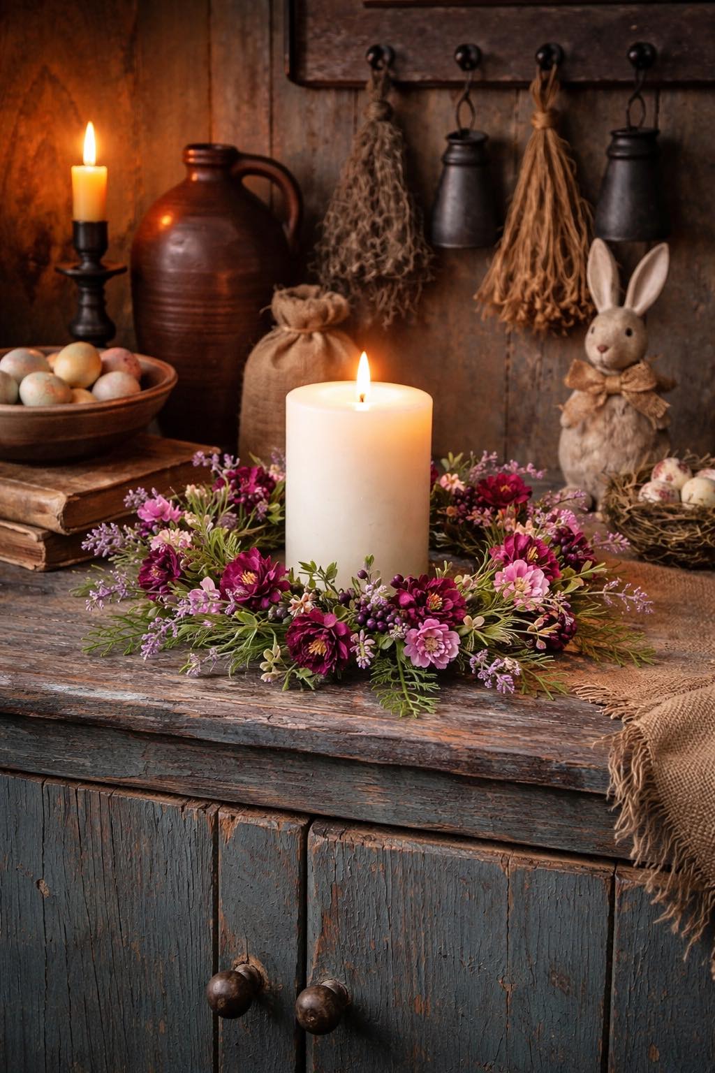 Blushing Spring Blossoms & Eucalyptus Candle Ring 4.5 "